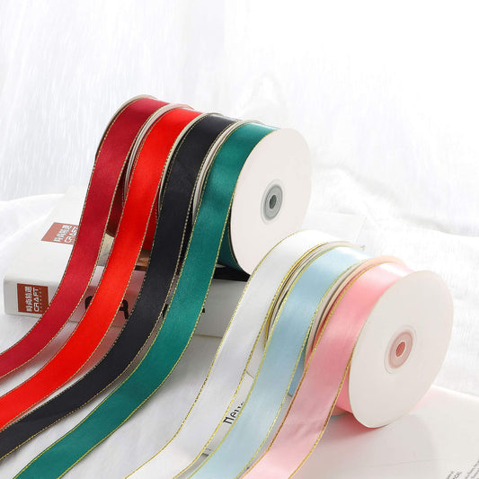 1 Inch x 50Yards Gold Satin Ribbon Solid Fabric Ribbons