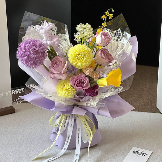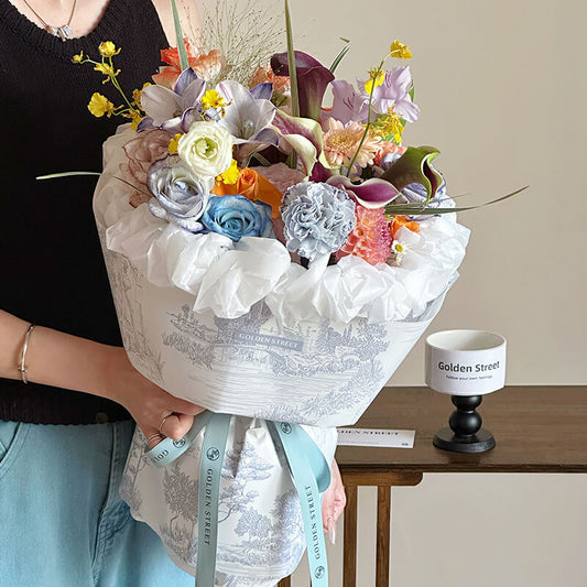Caja de flores redonda de terciopelo
